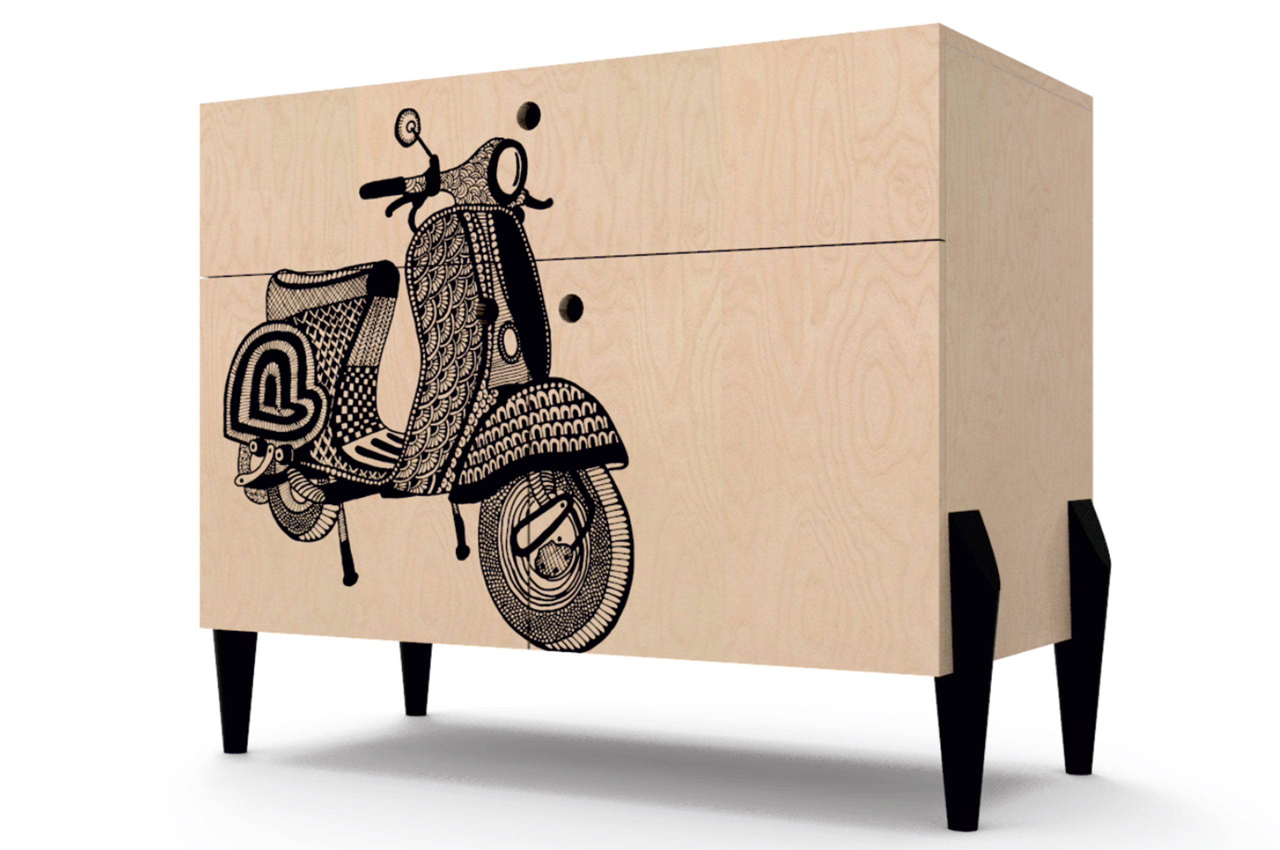Who thought something as simple as cabinets can reflect distinct personalities? Our Print Collection is designed to invite conversations. The clean, light coloured structure in birch ply with beautifully designed legs in black stained ash are neutral backdrops for our dramatic prints.